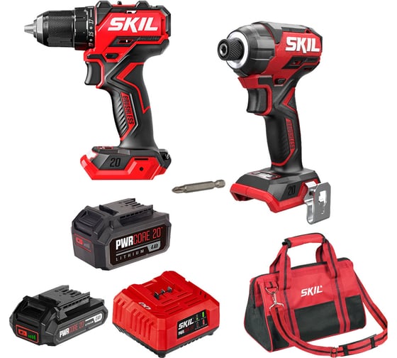 Аккумуляторная дрель-шуруповерт SKIL DL6293+ID6739+набор(ЗУ+Акб 2Ач)CB5197SE11+сумка BG3224+АКБ(4Ач)BY5196 9-1-034