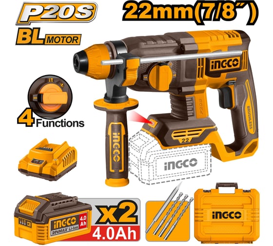 Аккумуляторный перфоратор INGCO 20В 2 Дж, б/щ INDUSTRIAL CRHLI212282