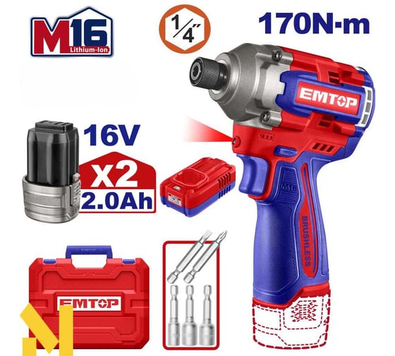 Аккумуляторный ударный шуруповерт emtop ECIRL16178