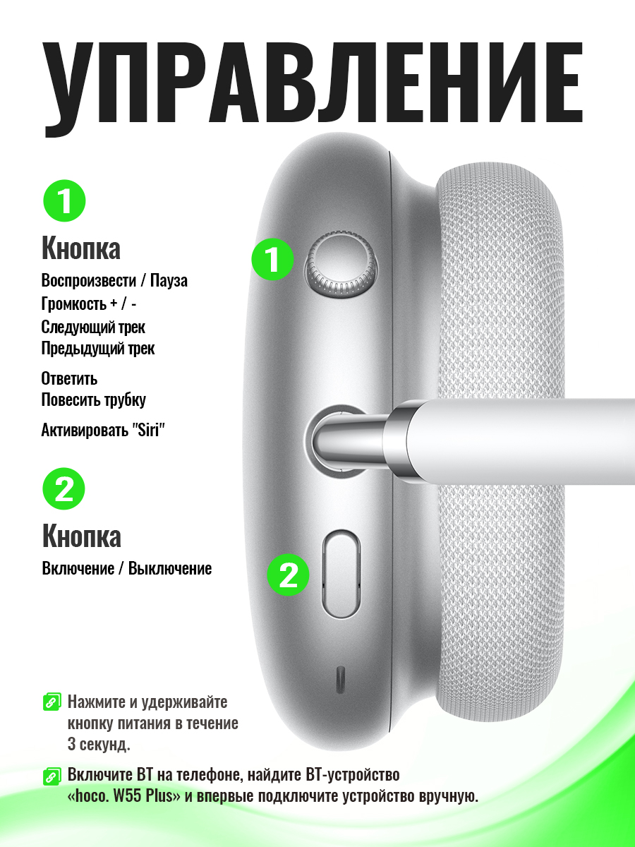- Комплект поставкиЗаводская упаковка; Наушники беспроводные Hoco W55; Кабель зарядный USB/Type-C; AUX-кабель; Инструкция на русском языке