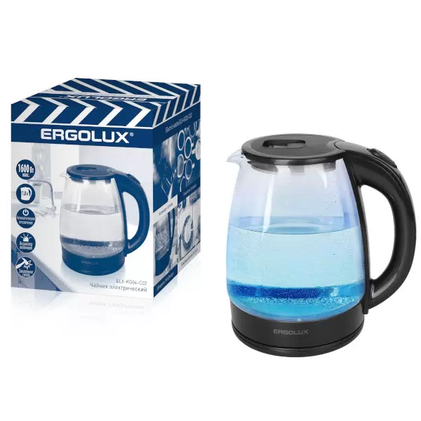 Чайник электрический Ergolux ELX-KG06-C02 1.8 л черный, прозрачный