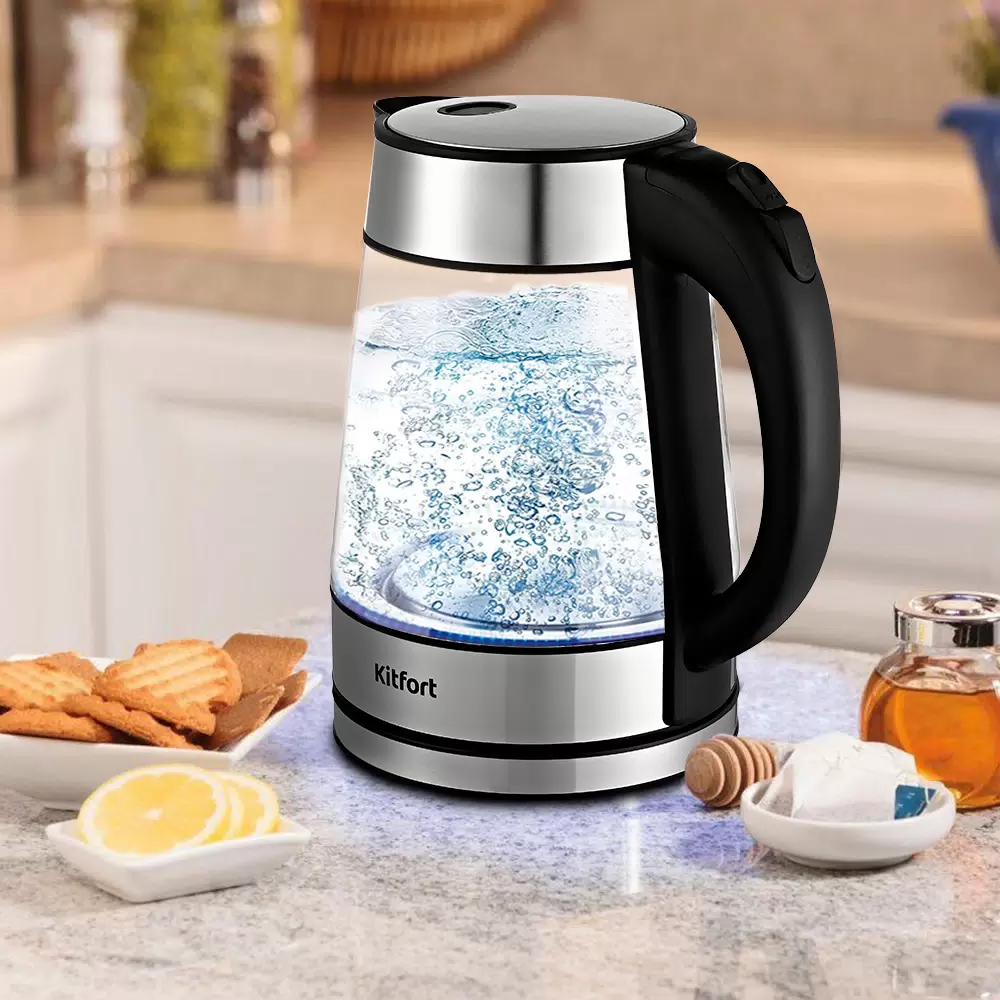 Чайник электрический Kitfort KT-6118 1.7 л серебристый, прозрачный