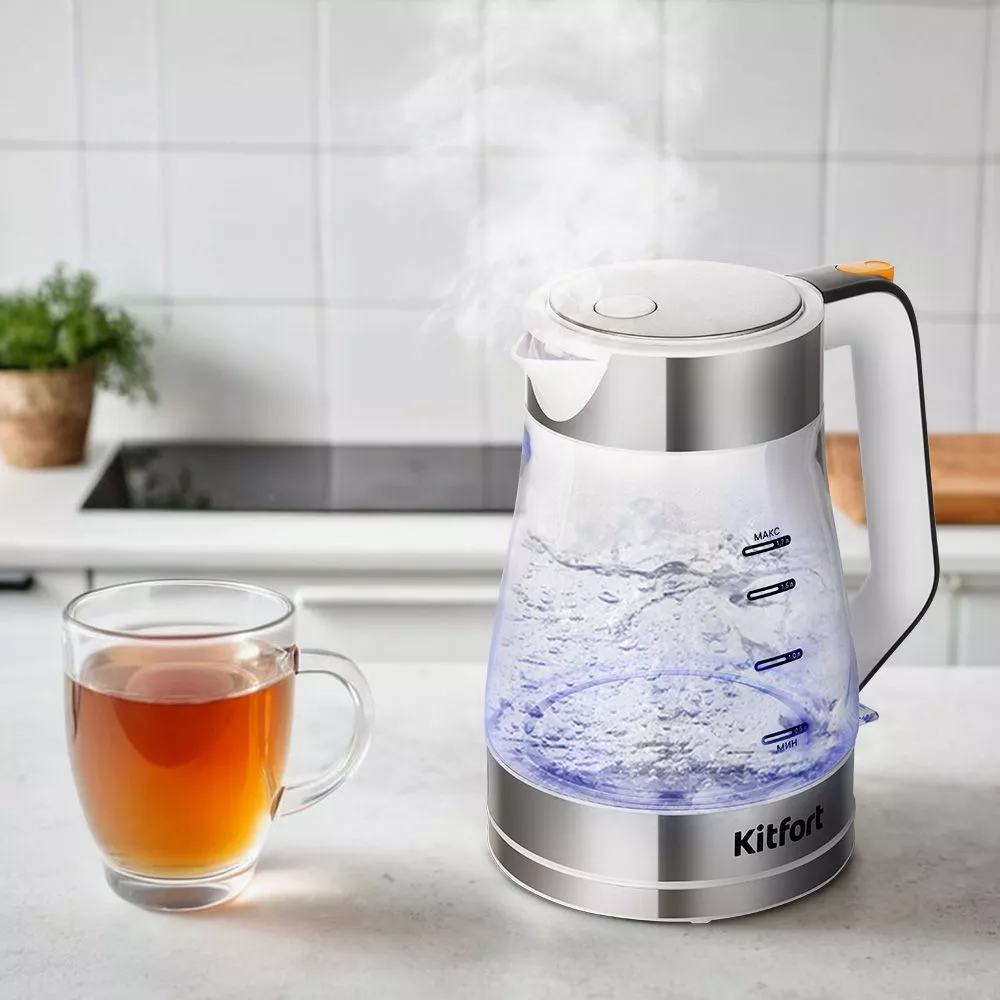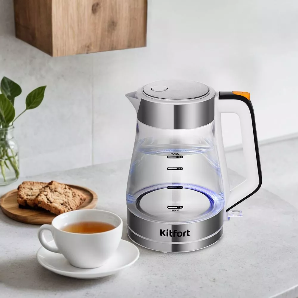Чайник электрический Kitfort КТ-6626 1.7 л серебристый, прозрачный