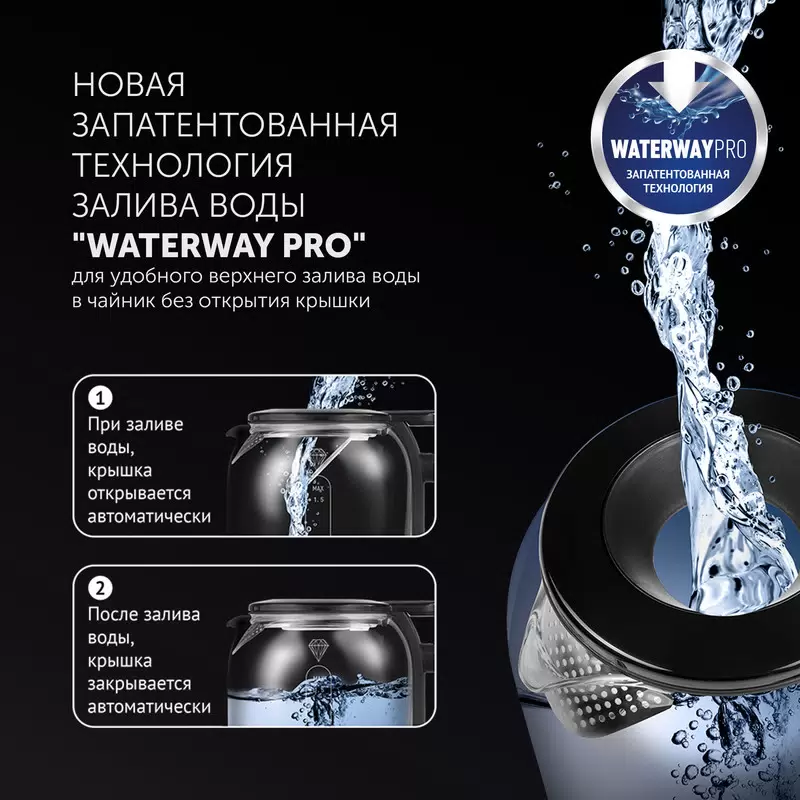 Чайник электрический Polaris PWK1753CGL 1.5 л прозрачный, черный