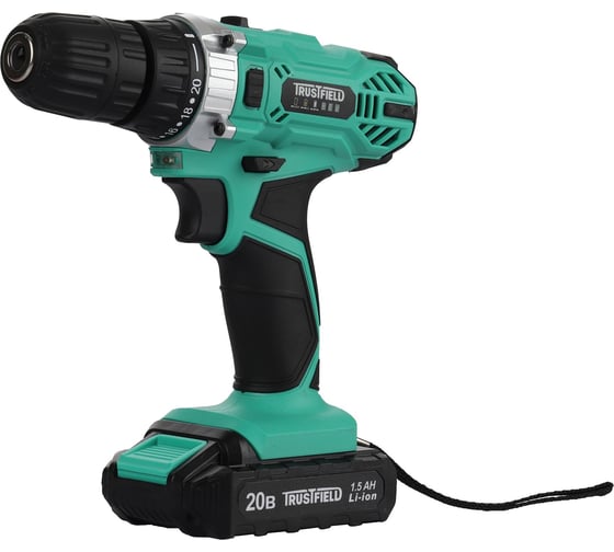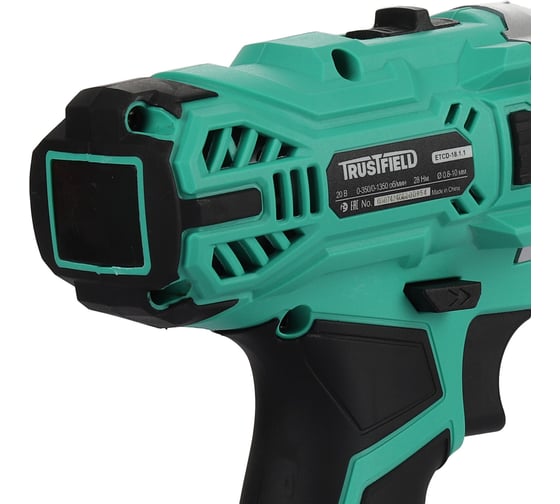 Дрель аккумуляторная TRUSTFIELD (20В, 28Нм, БЗП 10мм, 2 ск., 0-350/0-1350об/мин, 1 акб 1,5Ач,ЗУ) ETCD-18.1.1
