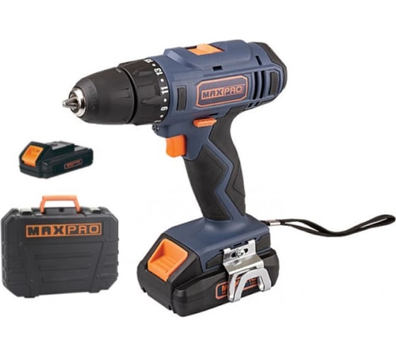 Дрель-Шуруповерт аккумуляторная MAX-PRO 18 В, 0-350/0-1250 об/мин, 10 мм, 30 Нм, 2 батареи (Li-Ion) х1,5 Ач, 15+1, 1 ч., регулировка оборотов, резинов 85030