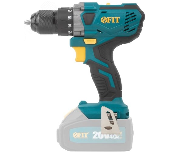 Дрель-шуруповерт аккумуляторный FIT 20 В, 0-400/1400 об/мин, 40 Нм, 1,4 кг, рез. накл., без АКБ, коробка 79905