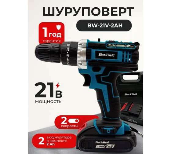 Дрель-шуруповерт BlackWeld аккумуляторная DZ04-2B 21V 2.0Ah 150154