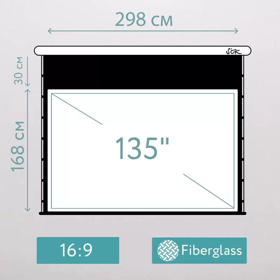 Экран для проектора S-OK SCPSMT-298x168FG-ED30 135 " 16:9 настенно-потолочный, эл. привод