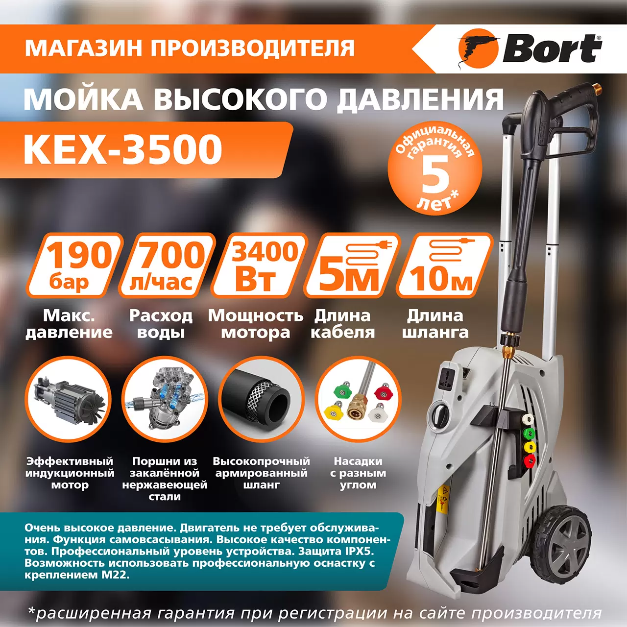 Электрическая мойка высокого давления Bort KEX-3500 91278166 3400 Вт