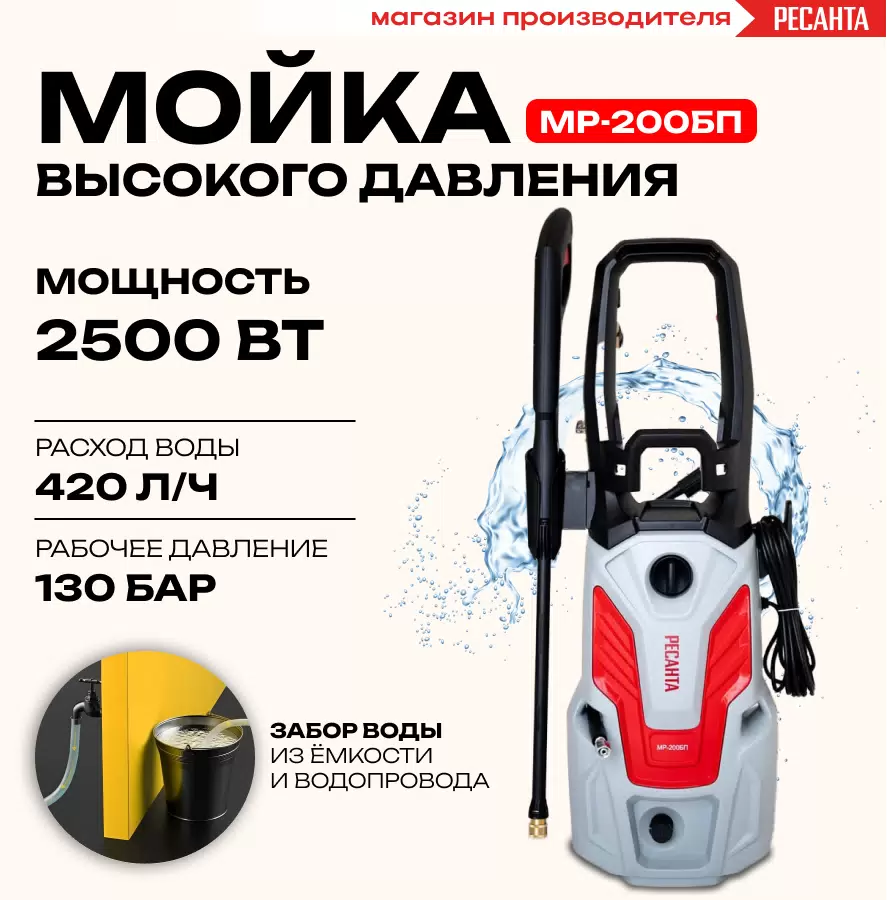 Электрическая мойка высокого давления Ресанта МР-200БП 70/8/23 2500 Вт