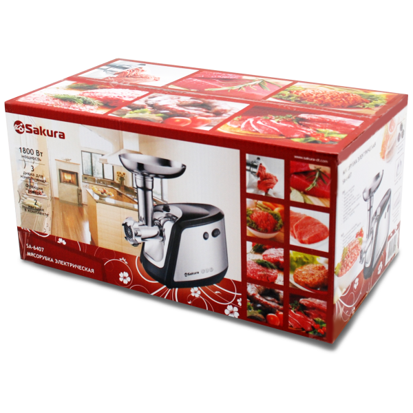 Электромясорубка SAKURA SA-6407 1800 Вт черный/серебристый