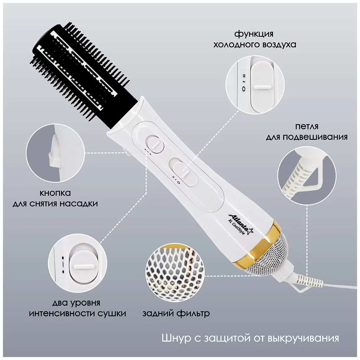 Фен-щетка Atlanta ATH-6842 1000 Вт белый