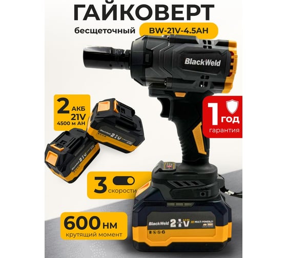 Гайковерт аккумуляторный бесщеточный BlackWeld 600N 4.5 Ah 150246