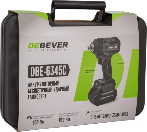 Гайковерт аккумуляторный Debever бесщеточный, ударный, квадрат 1/2,550Nm, 20B; в компл. АКБ 4,0 а/ч; з/у 4,0 а/ч DBE-6345CKIT