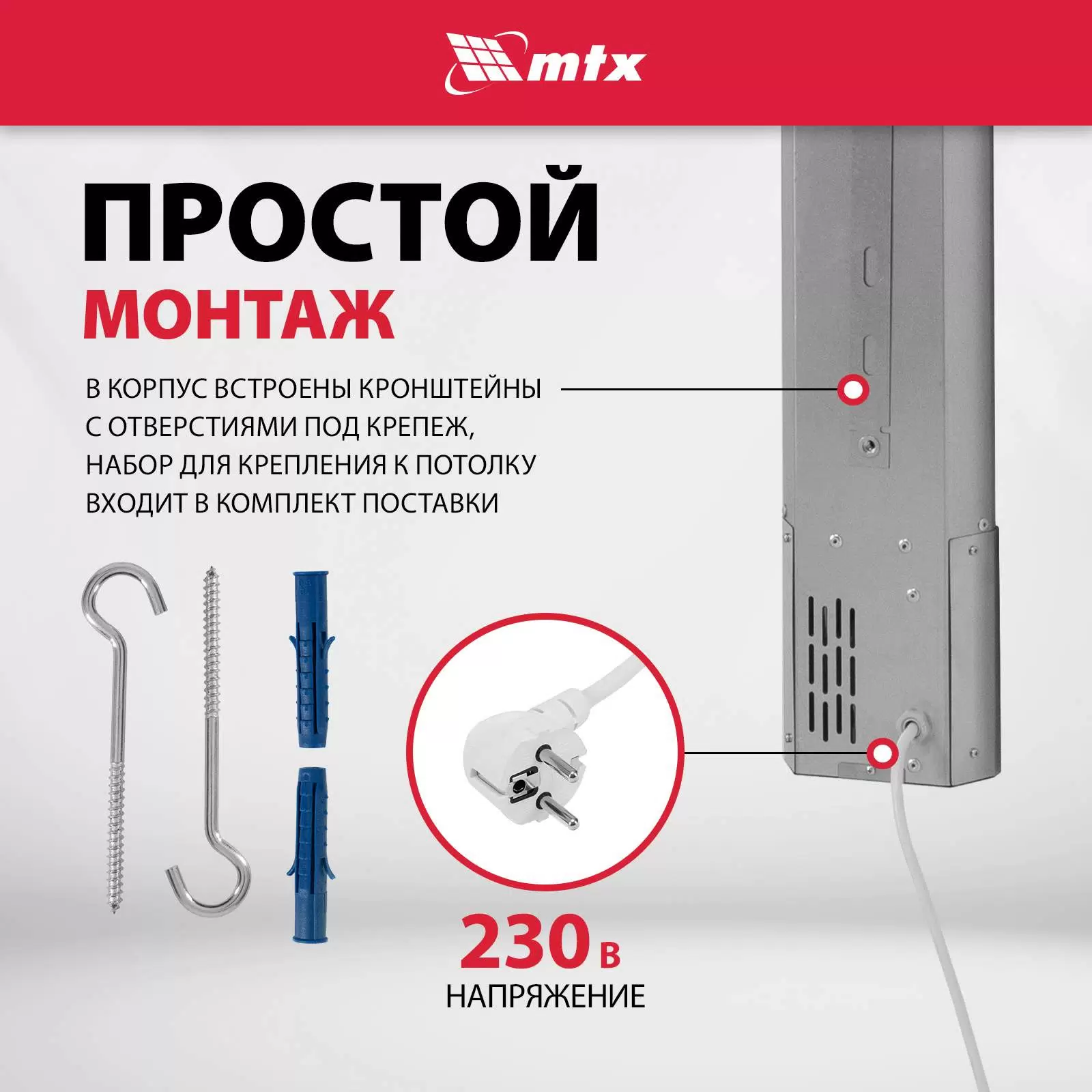 Инфракрасный обогреватель MTX IH-1500, 230В, 1500 Вт, IP54, кабель с вилкой 1,8 м 98702