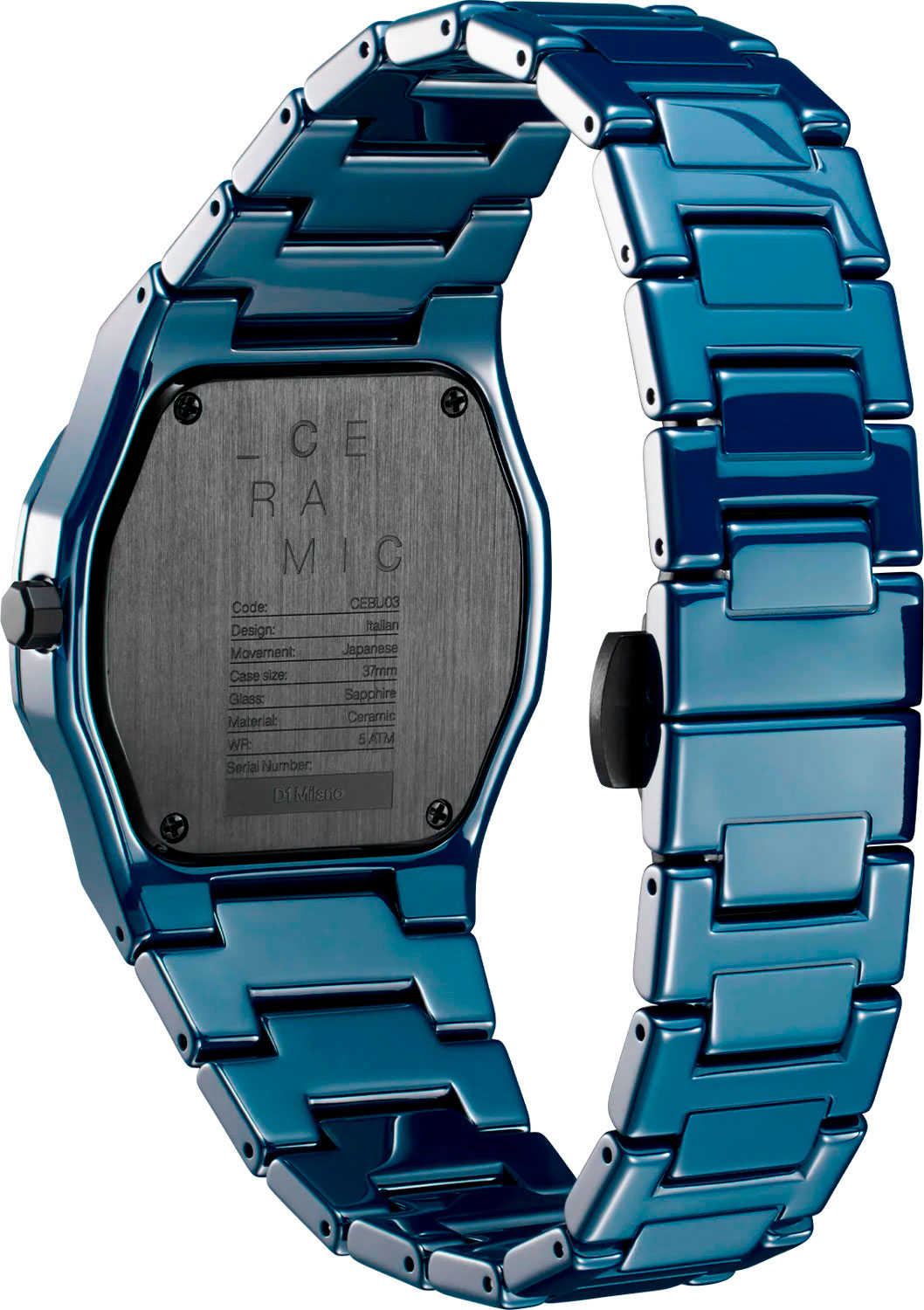 Эти дизайнерские и качественные часы идеально сочетают в себе безупречный стиль и мастерство, создающие ощущение роскоши и уверенности в каждом мгновении. Унисекс часы Pure Blue с корпусом из синей керамики. Матовый синий циферблат без меток. Стрелки из латуни. Граненая заводная головка. Стальная задняя крышка с черным PVD покрытием крепится на 4-х винтах. Индивидуальный серийный номер. Браслет из синей керамики. Скрытая застежка-бабочка.