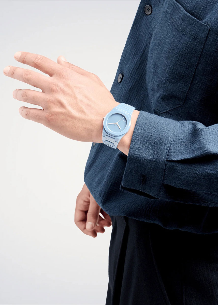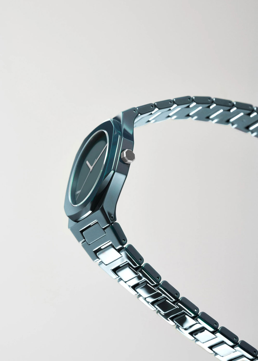 Унисекс часы Ceramic Pure Indigo с корпусом из керамики. Матовый циферблат без меток. Стрелки из латуни. Граненая заводная головка. Стальная задняя крышка крепится на 4-х винтах. Браслет из керамики. Скрытая застежка-бабочка.