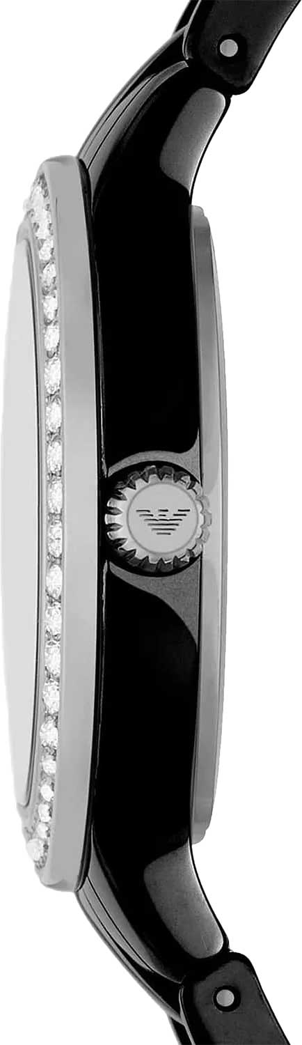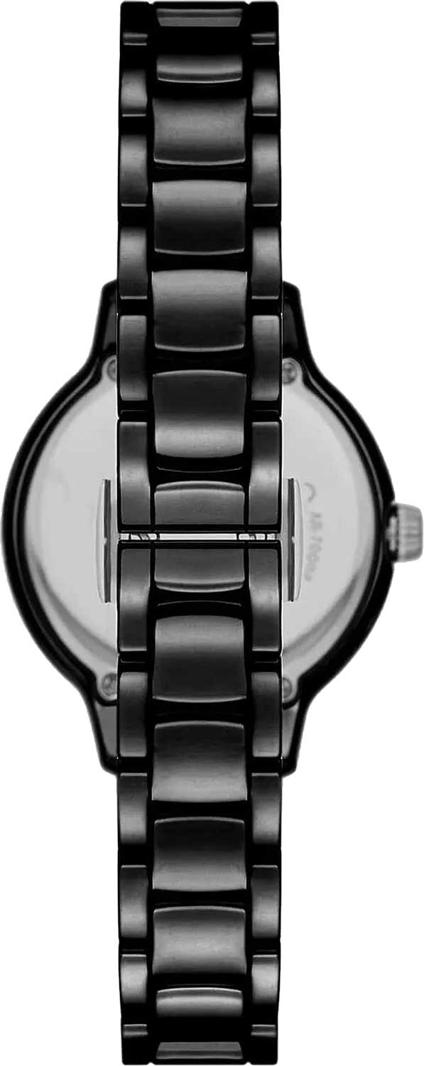 Женские наручные часы Cleo. Циферблат выполнен по технологии Sunray (солнечные лучи). Метки в виде точек, инкрустированных кристаллами. Стальной безель украшен паве из кристаллов. Рифленая заводная головка. Стальная задняя крышка крепится на 4-х винтах. Браслет из керамики с раскладывающейся застежкой.