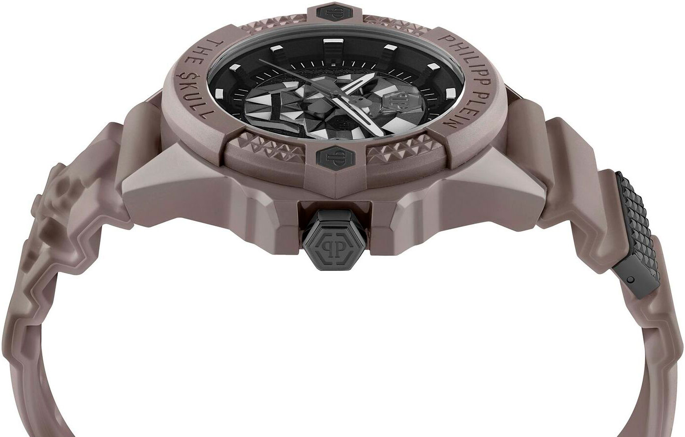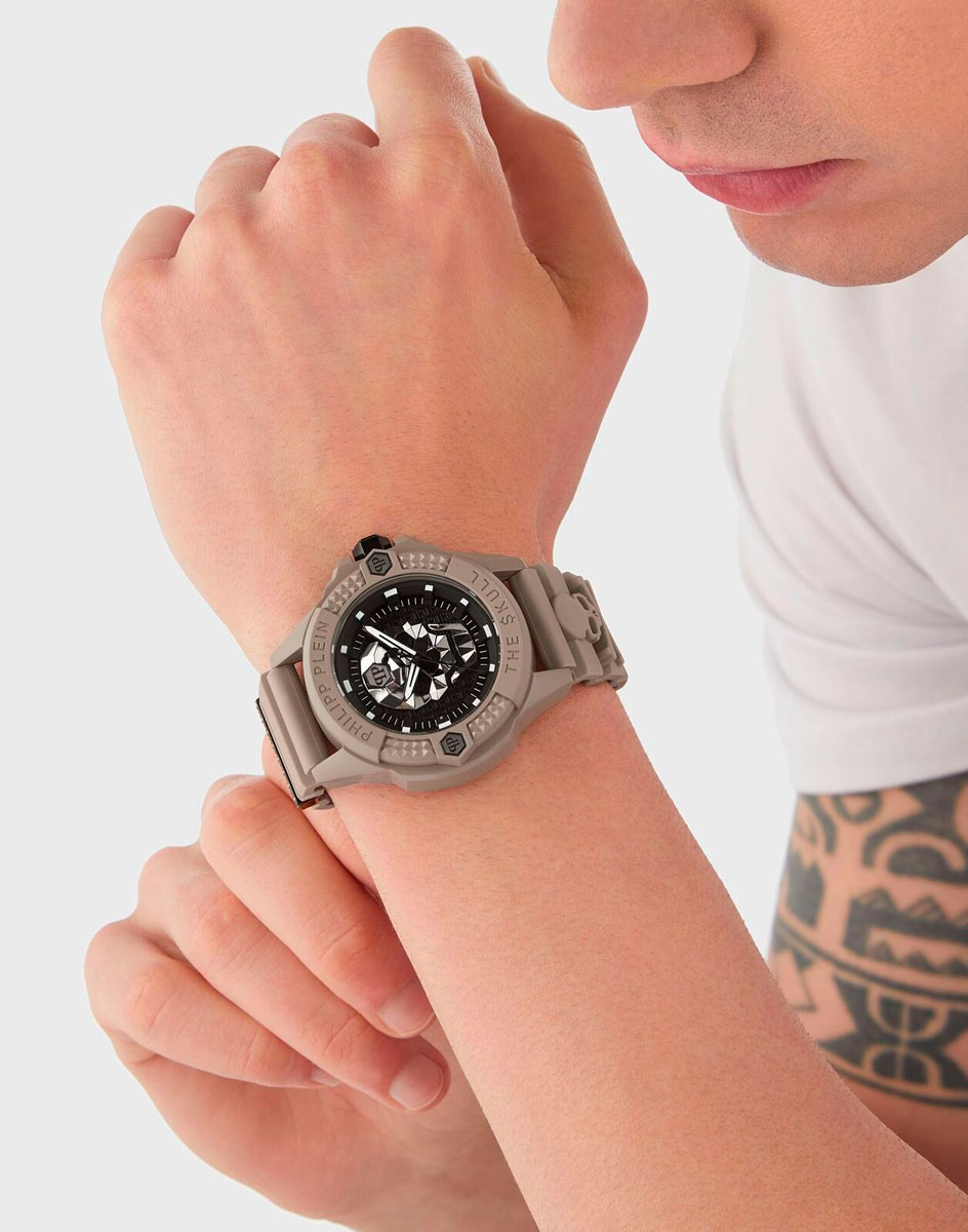 Яркие часы с вызывающим дизайном - идеальный вариант для современного ритма жизни. Мужские часы с круглым керамическим корпусом The Skull Ecoceramic. Циферблат с метками в виде штрихов украшен трехмерным граненым черепом. Шестигранная заводная головка с защитой. Силиконовый ремешок со стальной вставкой. Классическая застежка украшена черепом.