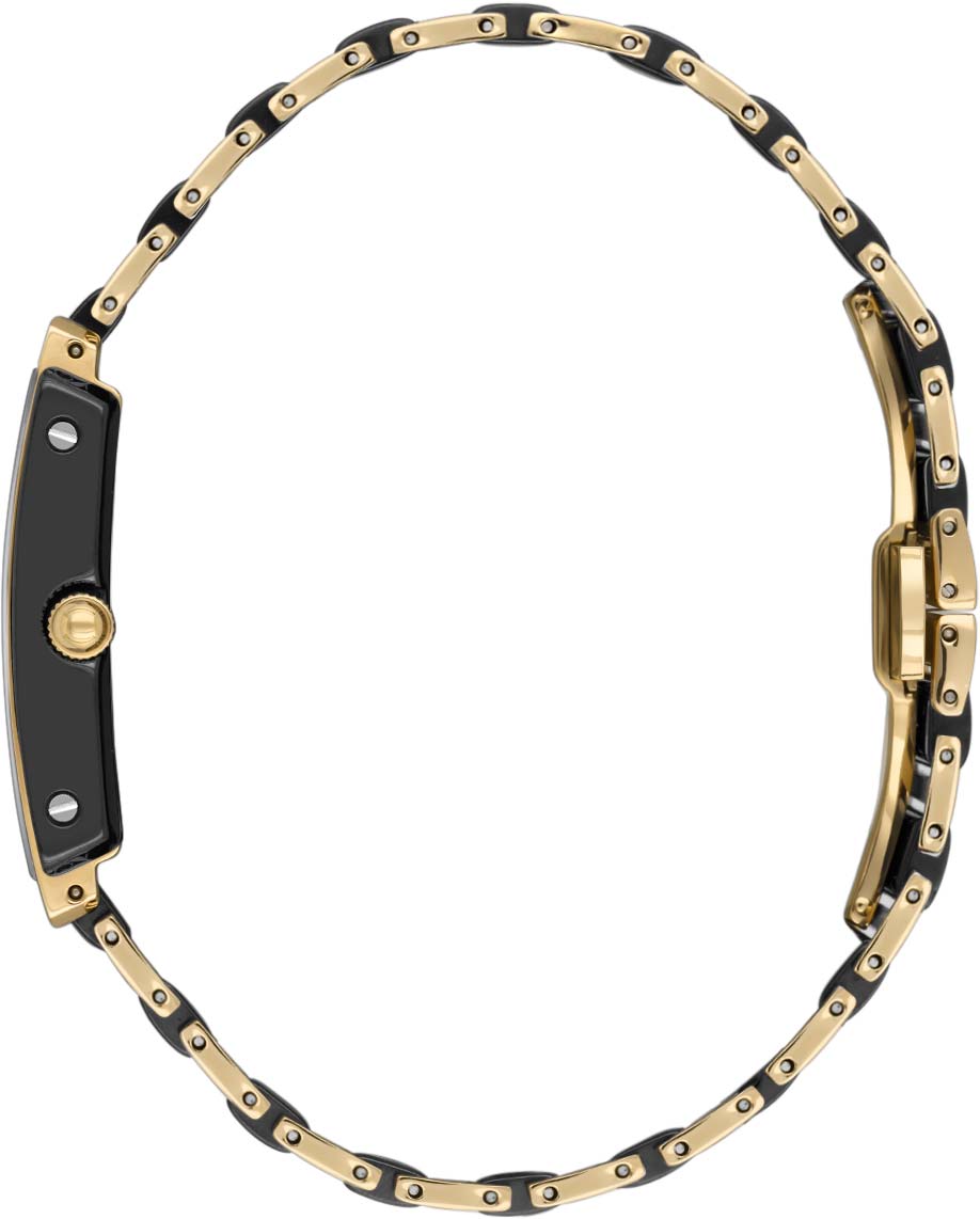 Pair. Мужские часы. Прямоугольный керамический корпус. Матовый циферблат украшен фирменным логотипом. Накладные метки в виде штрихов. Острые стрелки в стиле Alpha. Окошко даты находится на отметке 6 часов. Стальной браслет с керамическими вставками. Рифленая заводная головка. Раскладывающаяся застежка.