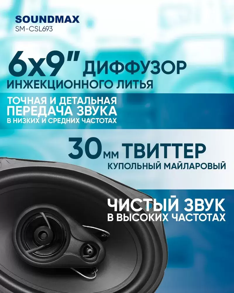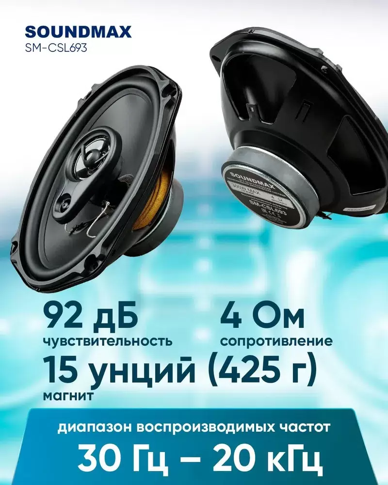 Колонки автомобильные SOUNDMAX SM-CSL693, 15x23 см (6x9 дюйм.), комплект 2 шт.