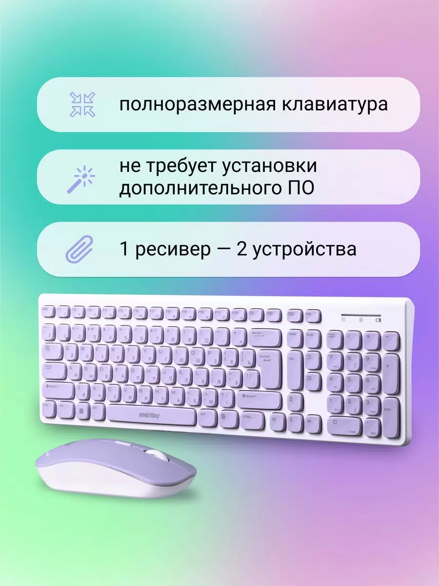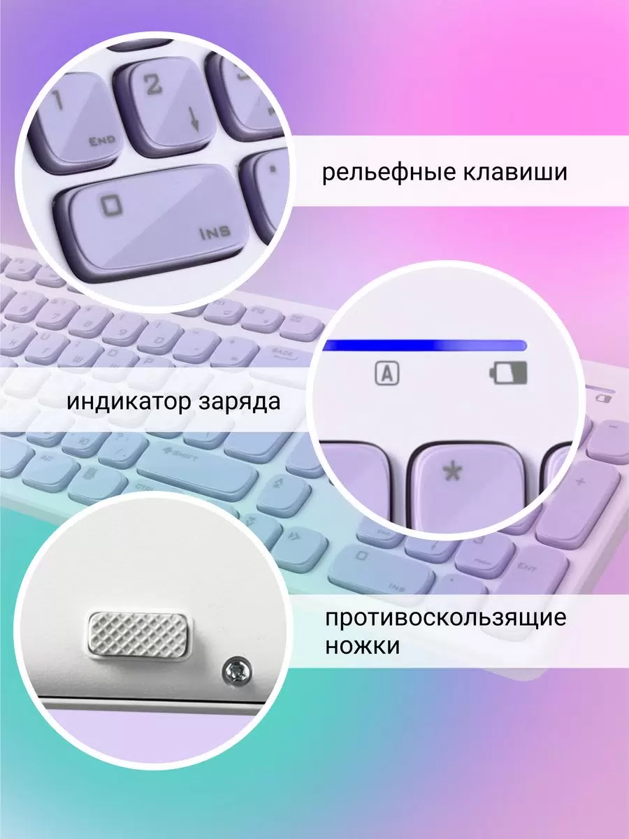 - Цвет клавиатурыбелый; сиреневый