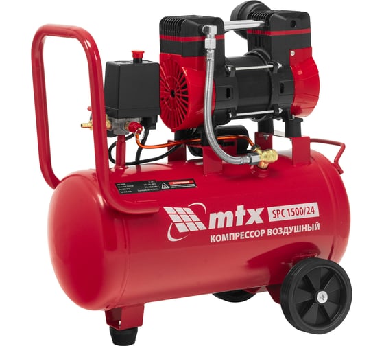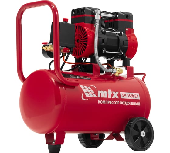 Компрессор безмасляный малошумный MTX SPC 1500/24, 1500 Вт, ресивер 24 л, 260 л/мин 58139