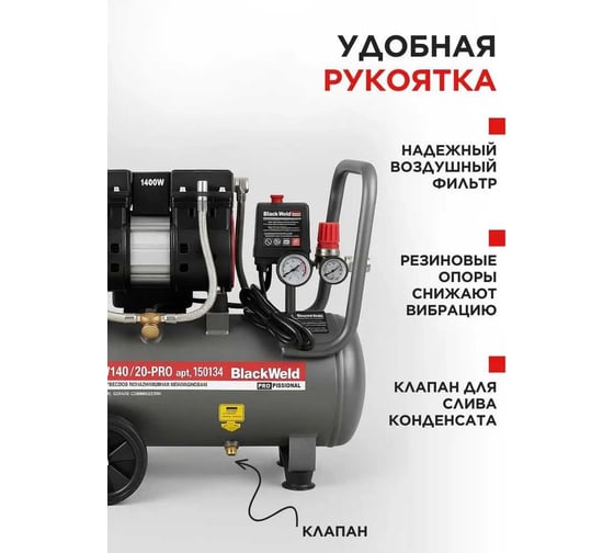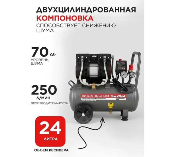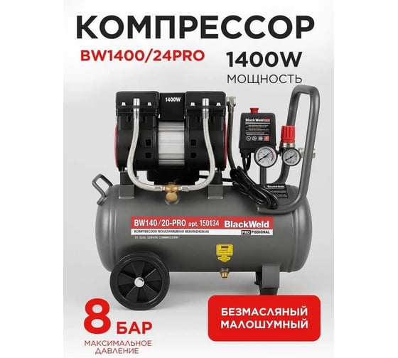 Компрессор коаксильный безмасляный BlackWeld BW1400/24-PRO 24л 150134