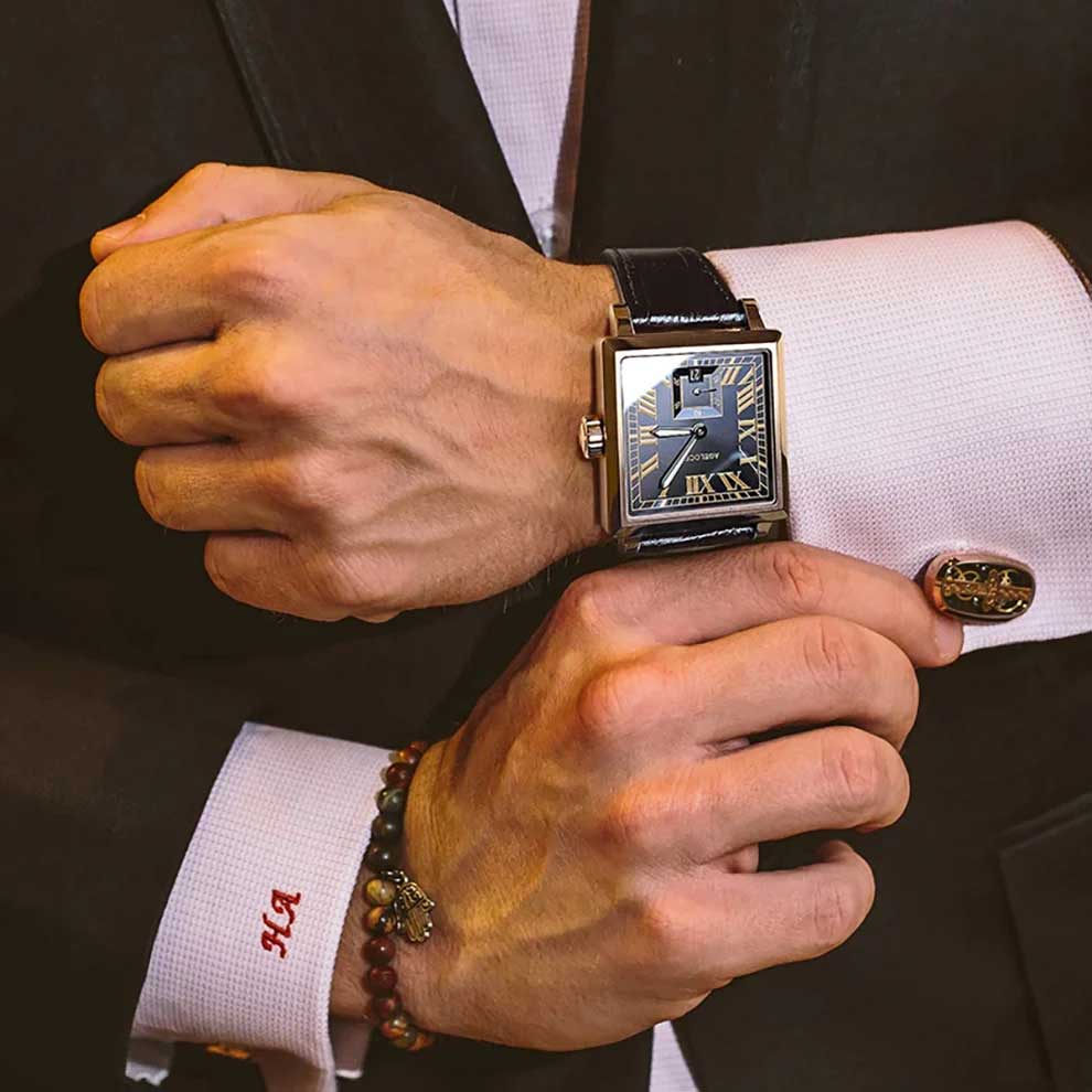 Аккуратный мужской аксессуар – универсальный выбор для тех, кто ценит безупречность в каждой детали. Мужские механические часы Codex Retro. В механизме 27 камней, частота 21600 полуколебаний в час. Запас хода 42 часа. Противоударное устройство оси баланса Incabloc. Механизм часов декорирован узором Cotes de Geneve. Секундная стрелка вынесена на отдельный циферблат. Циферблат выполнен по технологии Sunray (солнечные лучи) и защищен прочным сапфировым стеклом. Метки в виде римских цифр. Окошко даты находится в положении 6 часов. Прозрачная задняя крышка крепится на 8-ми винтах. Рифленая заводная головка украшена логотипом Agelocer. Ремешок с раскладывающейся застежкой. Система быстрой замены ремешка.