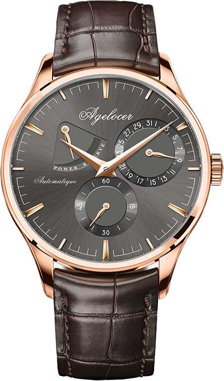 Уценка. 2 модели. Царапины на корпусе. Мужские часы. Коллекция вдохновлена «Жемчужиной Дуная» Будапештом. В механизме 29 камней,частота 21600 полуколебаний в час. Ретроградный указатель запаса хода до 42 часов. Противоударное устройство оси баланса Incabloc. Механизм часов декорирован узором Cotes de Geneve. Индикация даты и секунд вынесены на отдельные циферблаты. Циферблат выполнен по технологии Sunray (солнечные лучи) защищен прочным сапфировым стеклом. Метки в виде штрихов. Заводная головка украшена логотипом Agelocer. Прозрачная задняя крышка. Ремешок с раскладывающейся застежкой и системой быстрой замены.