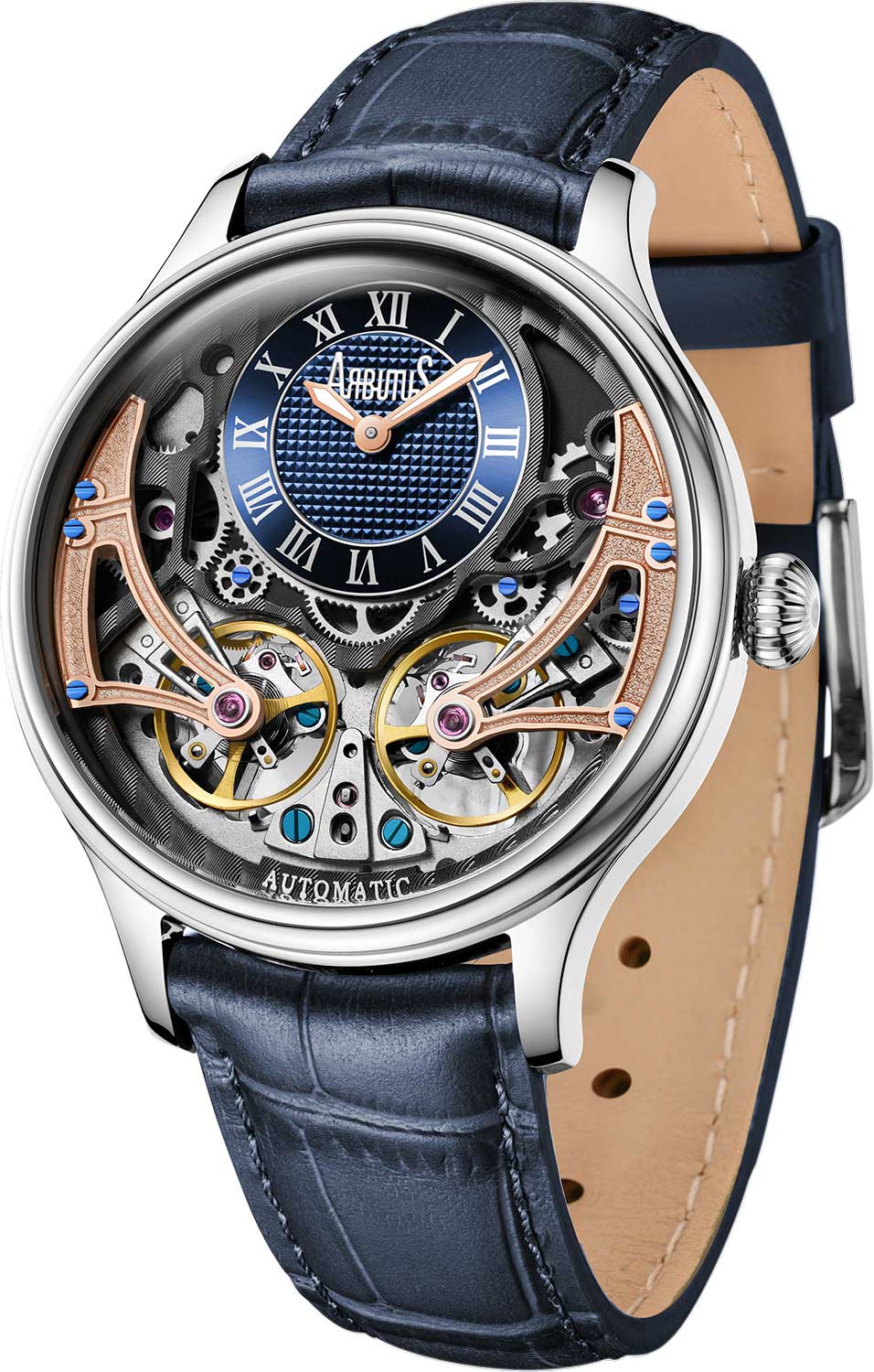 Broadway. Скелетонизированные часы. В механизме 47 камней, частота 21600 полуколебаний в час. Запас хода 36 часов. Многоуровневый циферблат с метками в виде римских цифр. Прозрачная задняя крышка. Ремешок с классической застежкой и системой быстрой замены.