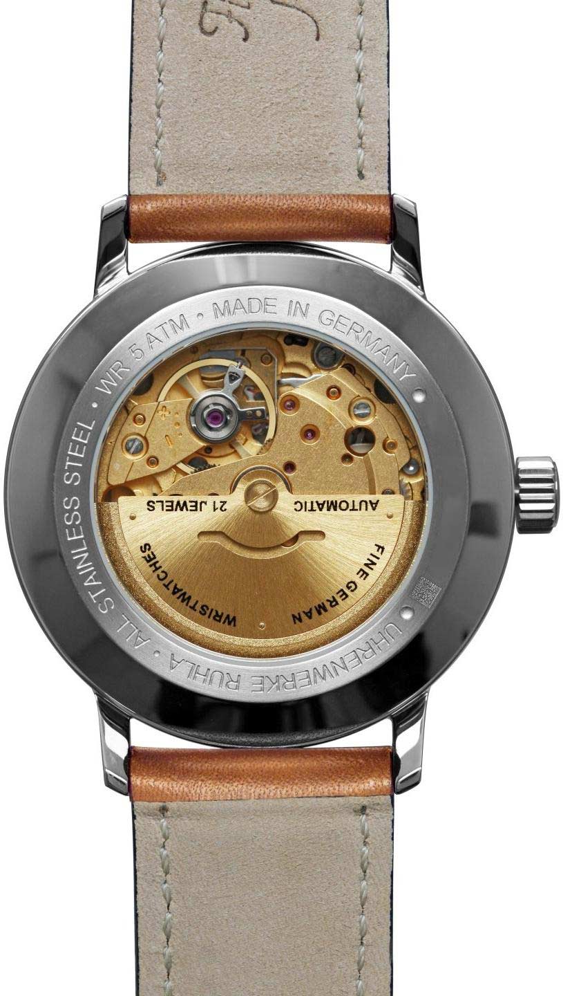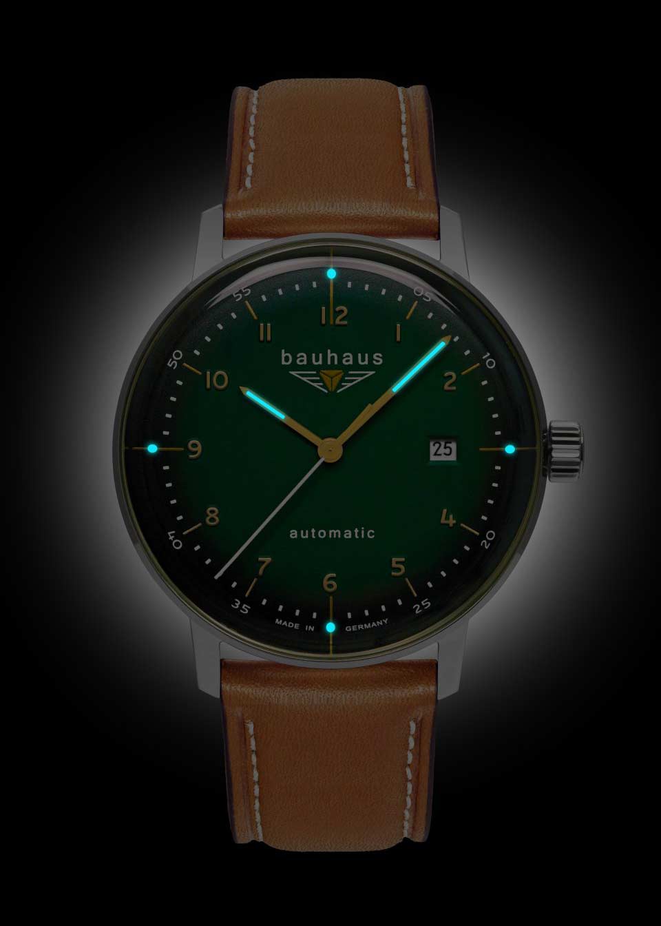 Метки и стрелки с люминесцентным покрытием, которое светится в темноте после непродолжительной зарядки на свету. Рифленая заводная головка. Прозрачная задняя крышка. Удобный кожаный ремешок.