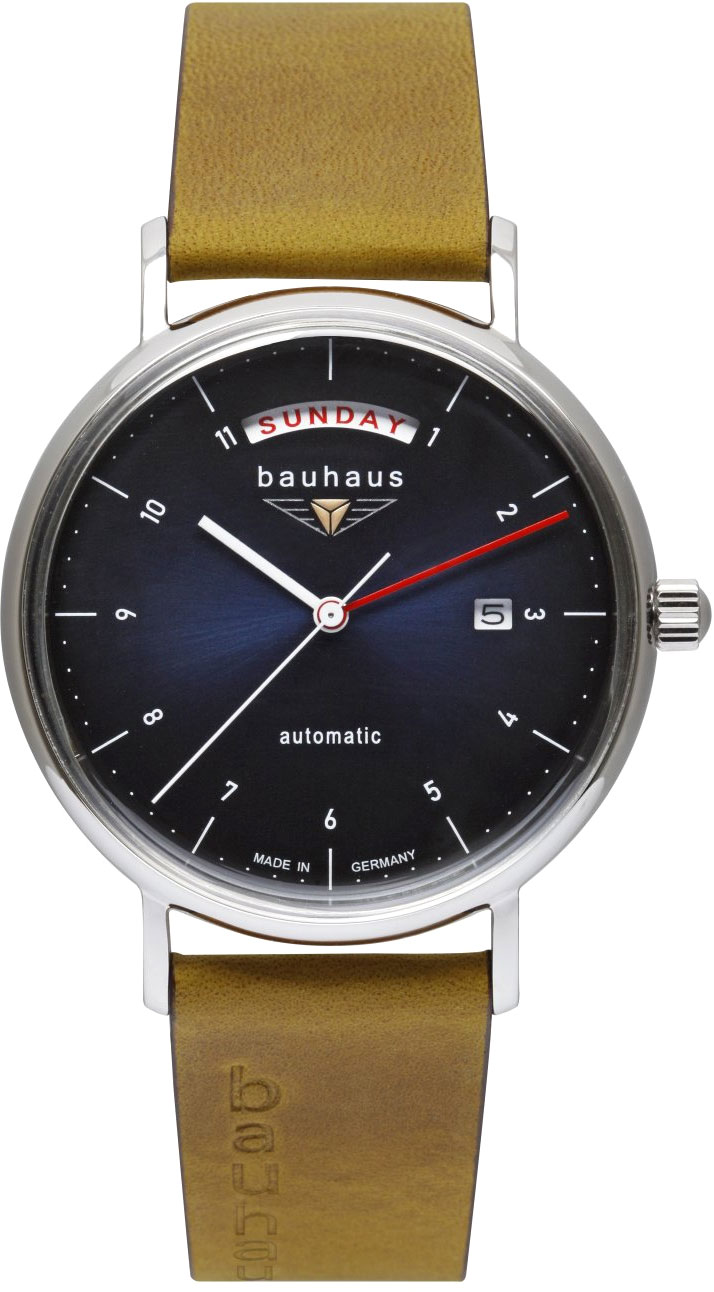 Отличные мужские часы с проверенным временем дизайном станут вашим любимым аксессуаром. Classic. Мужские наручные часы. В механизме 21 камень, частота 21600 полуколебаний в час. Запас хода 42 часа. Круглый стальной корпус c полированной поверхностью. Циферблат выполнен по технологии Sunray (солнечные лучи). Узкие прямоугольные стрелки в стиле Baton. Метки в виде арабских цифр. Окошки даты и дня недели. Рифленая заводная головка. Прозрачная задняя крышка. Удобный кожаный ремешок с классической застежкой и с тиснением Bauhaus.