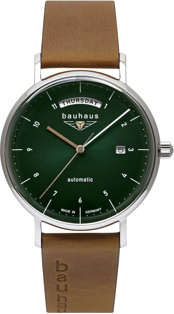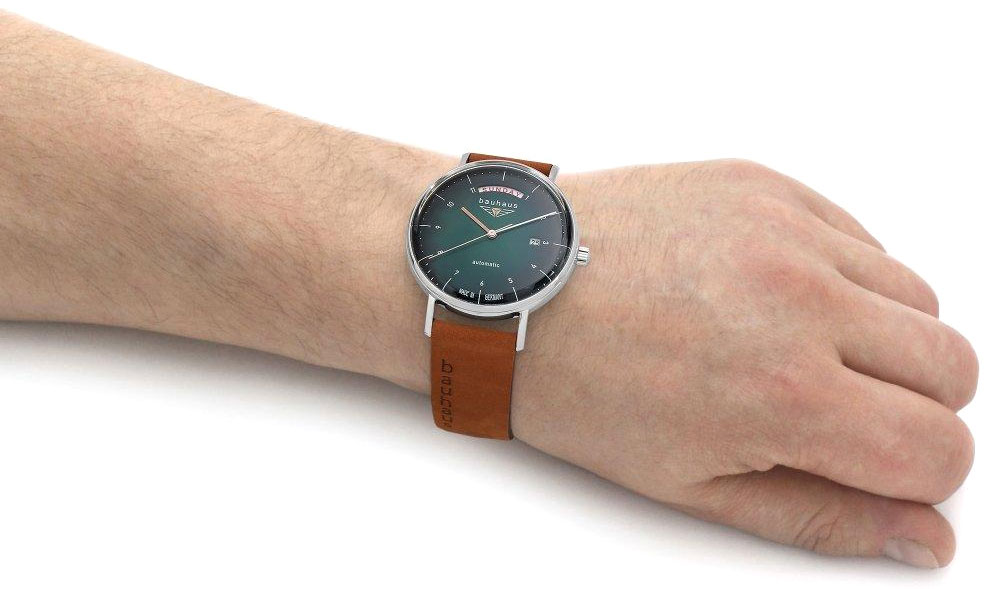 Отличные мужские часы с проверенным временем дизайном станут вашим любимым аксессуаром. Classic. Классические часы. В механизме 21 камень, частота 21600 полуколебаний в час. Запас хода 42 часа. Круглый стальной корпус c полированной поверхностью. Циферблат выполнен по технологии Sunray (солнечные лучи). Узкие прямоугольные стрелки в стиле Baton. Метки в виде арабских цифр. Окошки даты и дня недели. Рифленая заводная головка. Прозрачная задняя крышка. Удобный кожаный ремешок с классической застежкой и с тиснением Bauhaus.
