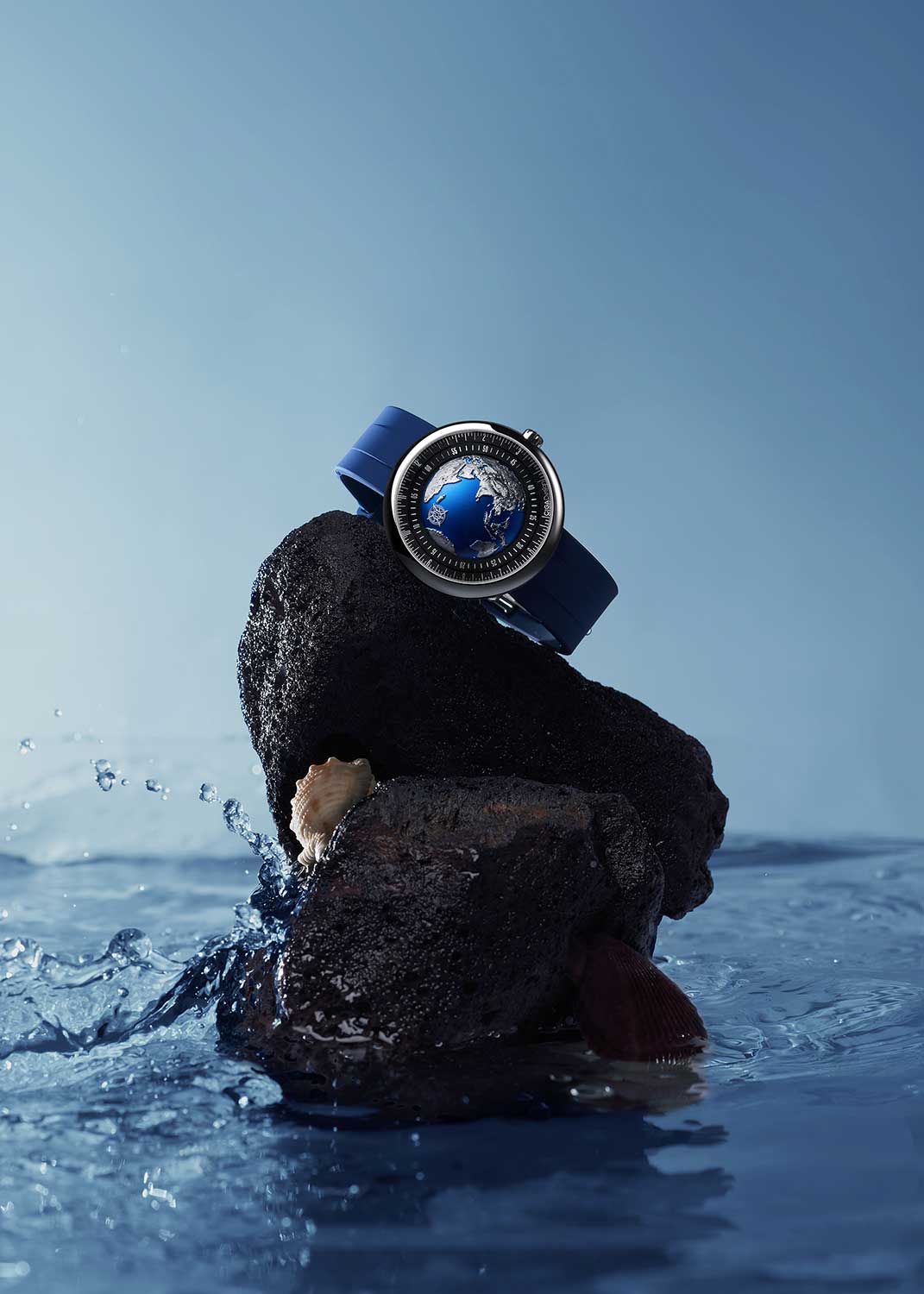 Выпуклое сапфировое стекло служит напоминанием об атмосфере и той защите, которую она обеспечивает. Прозрачная задняя крышка. Ремешок с раскладывающейся застежкой и системой быстрой замены.