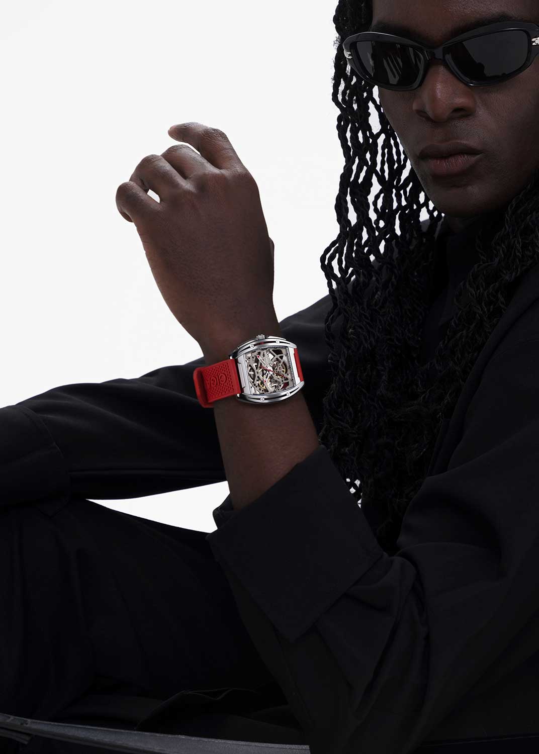 Скелетонизированные часы Z-Series. Стальной корпус особой бочкообразной формы. Оригинальные шестигранные винты маскируют прочный крепеж. В механизме 25 камней, частота 21600 полуколебаний в час. Запас хода 40 часов. С вращением шестеренок можно видеть каждую секунду и ощутить единство механики со временем.
