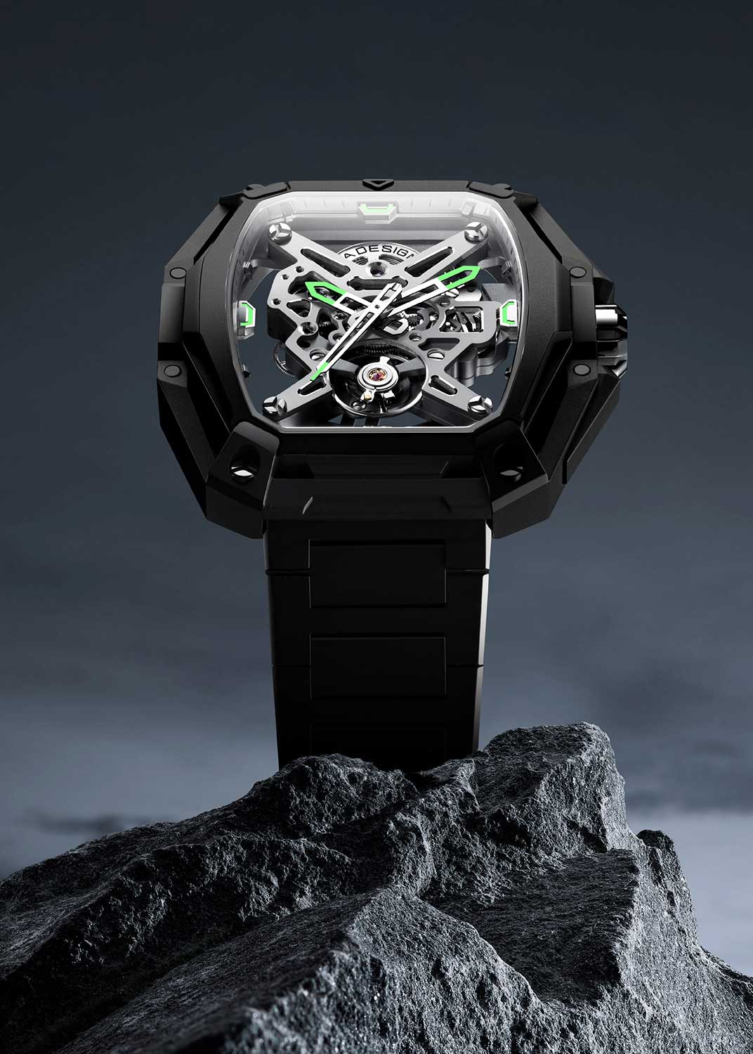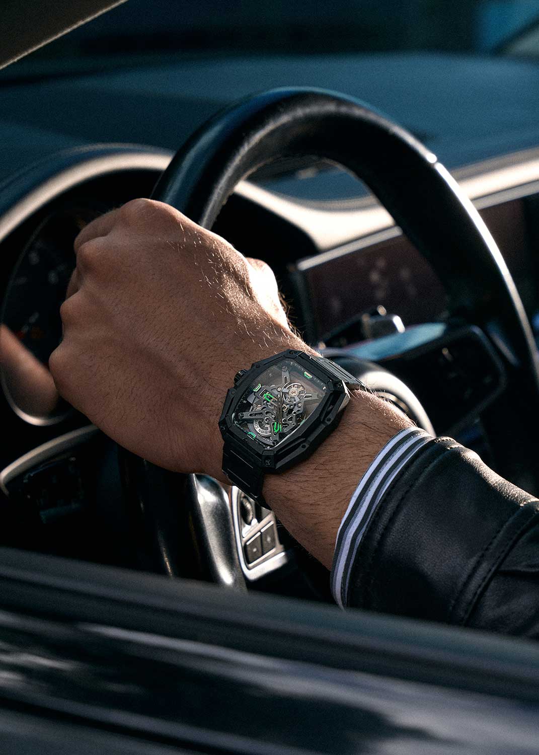 Скелетонизированные часы Z-Series City Hunter. Стальной корпус бочкообразной формы. В механизме 24 камня, частота 21600 полуколебаний в час. Запас хода 40 часов. Прозрачный циферблат с метками в виде штрихов защищен прочным сапфировым стеклом.
