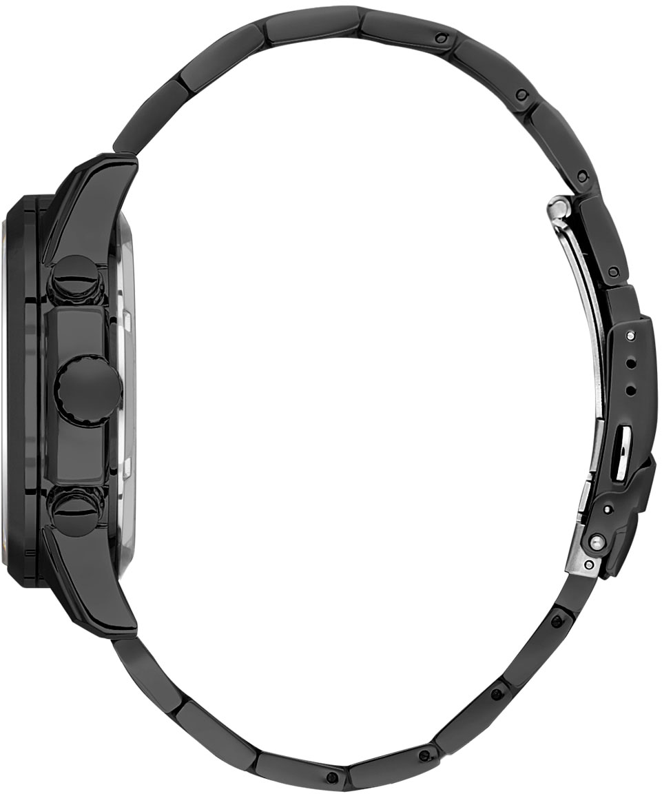 Мужские механические скелетонизированные часы с автоподзаводом. Круглый металлический корпус с IP покрытием. Метки в виде штрихов. На отдельных циферблатах отображаются дата и день недели. Рифленая заводная головка. Частично полированный и сатинированный стальной браслет с раскладывающейся застежкой.