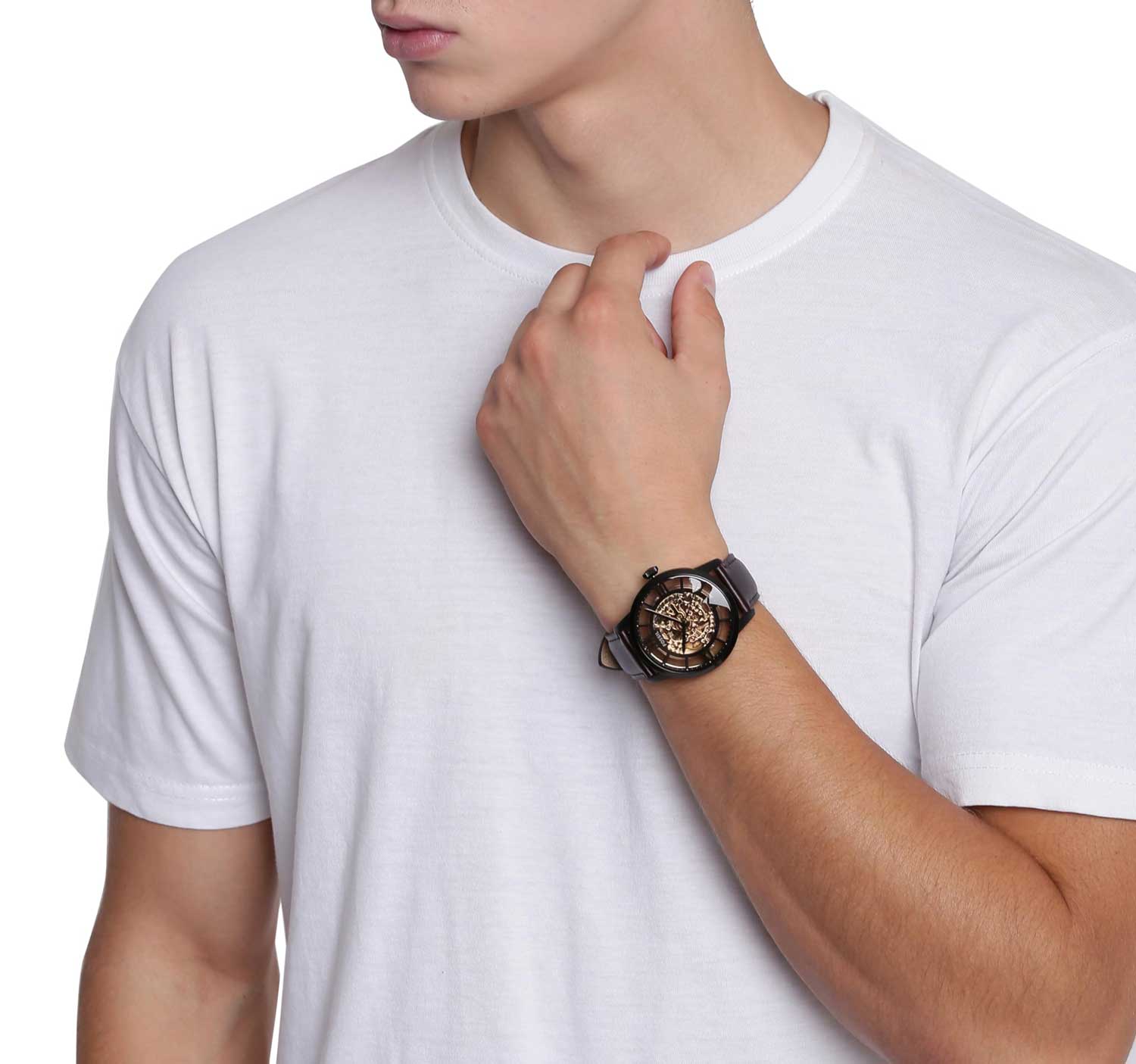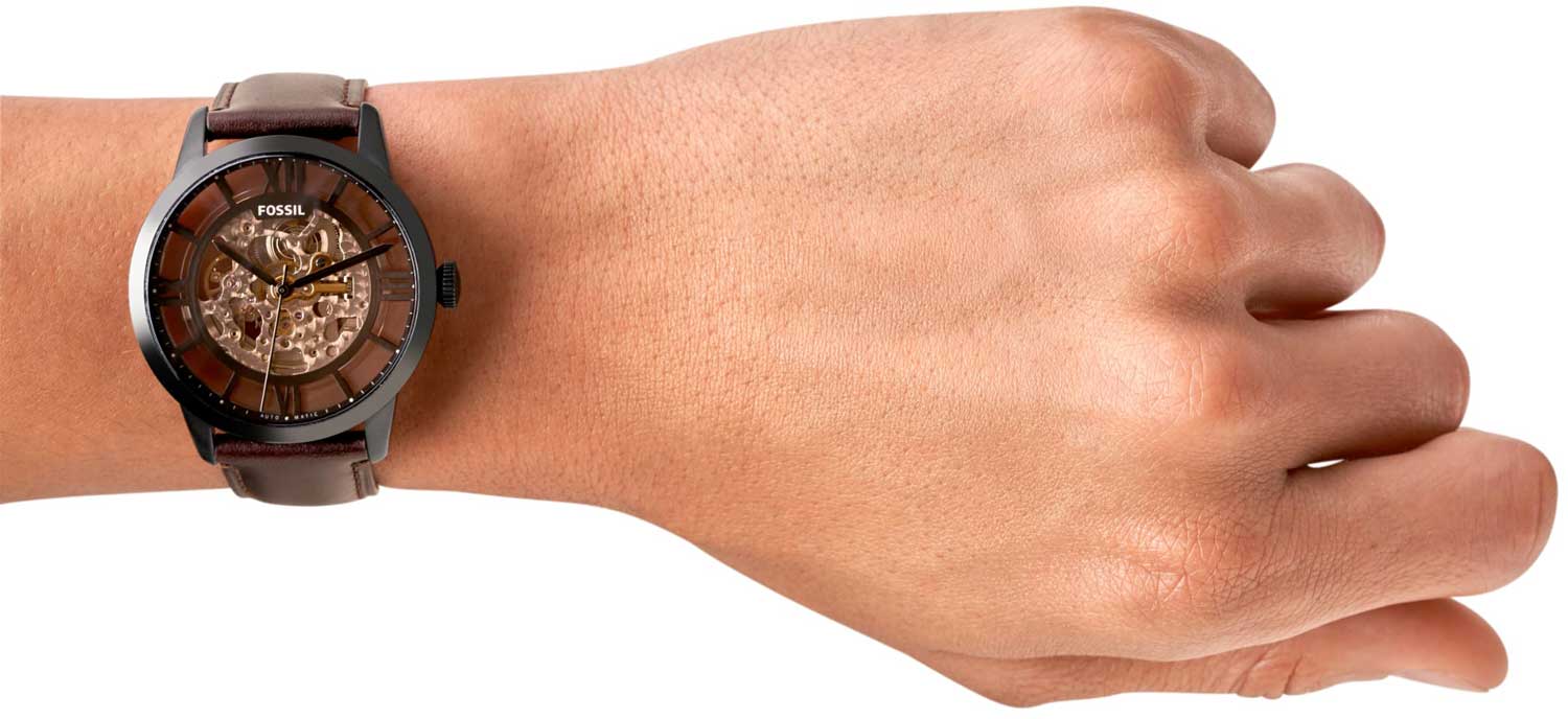 От этого аксессуара невозможно оторвать взгляд, насладитесь отлаженным движением механизма. Скелетонизированные часы Townsman Automatic. Круглый стальной корпус, прозрачный в зоне меток. Метки в виде штрихов и римских цифр. Рифленая заводная головка. Кожаный ремешок с классической застежкой.
