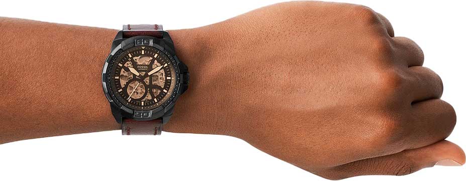 Изысканный стиль и дизайн этого аксессуара не оставит равнодушным ни одного модного мужчину. Bronson. Скелетонизированные часы. В механизме 21 камень. Метки в виде штрихов. Рифленая заводная головка с защитой. Прозрачная задняя крышка. Ремешок с классической застежкой и системой быстрой замены.
