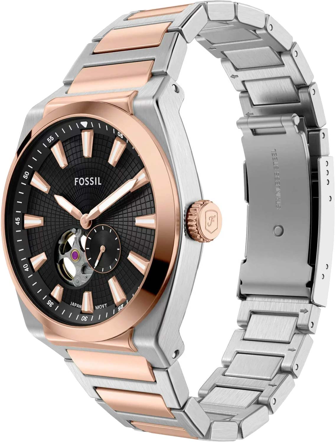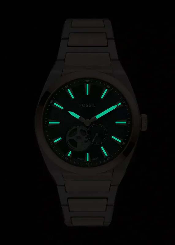Everett. Мужские наручные часы. В механизме 21 камень. Круглый стальной корпус. На текстурированном циферблате расположено прозрачное окошко, через которое видно часть механизма часов. Циферблат с метками в виде штрихов выполнен по технологии Sunray (солнечные лучи). Секундная стрелка вынесена на отдельный циферблат. Метки и стрелки с люминесцентным покрытием, которое светится в темноте после непродолжительной зарядки на свету.