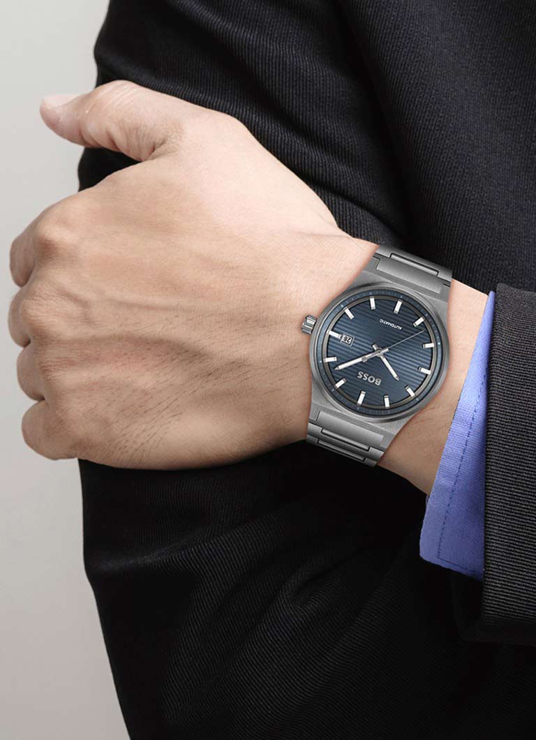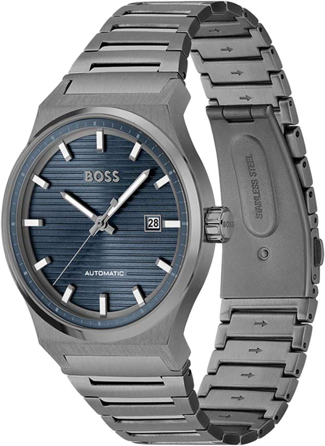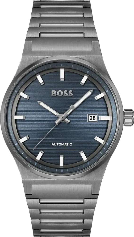 Этот функциональный аксессуар прекрасно гармонирует с вашим деловым костюмом. Мужские часы Candor Auto. Круглый стальной корпус. Циферблат с рисунком в виде горизонтальных полос украшен фирменным логотипом BOSS. Метки в виде штрихов. Окошко даты находится в положении 3 часа. Прозрачная задняя крышка. Рифленая заводная головка. Надежный стальной браслет с раскладывающейся застежкой.