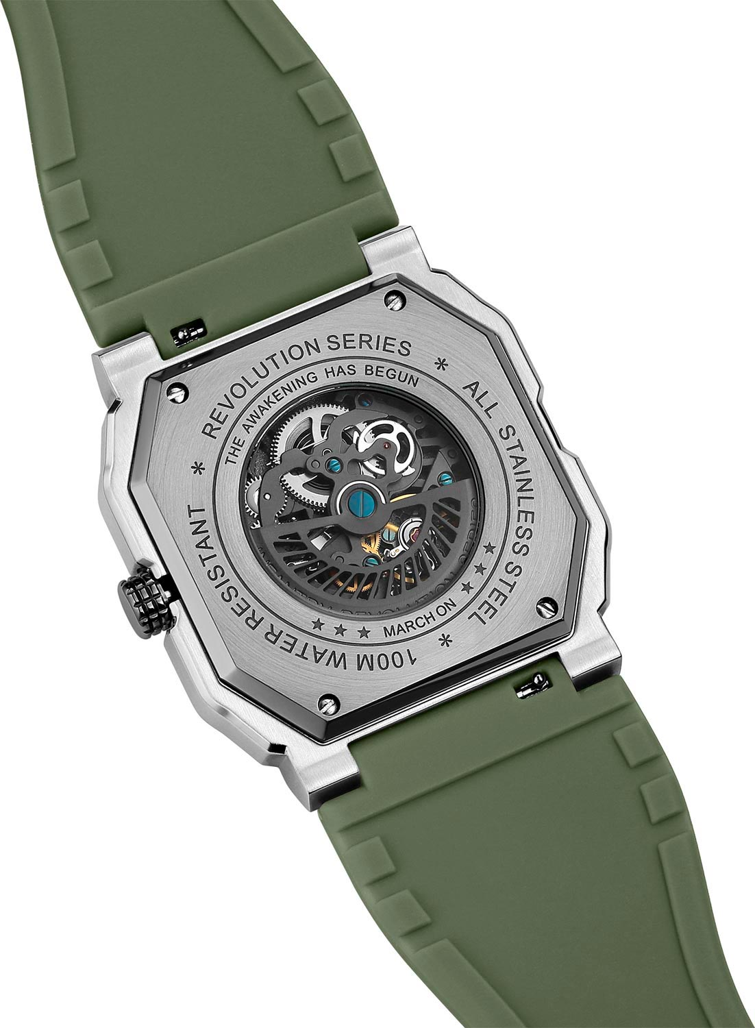 Массивный аксессуар создан для настоящих мужчин, которые хотят выглядеть эффектно. Наручные мужские часы The Autopilot. Стальной квадратный модульный корпус с матовой и полированной отделкой, состоит из 4-х частей. Дизайн циферблата в стиле ''хаки''. Накладные метки в виде арабских цифр и штрихов. Метки и стрелки с люминесцентным покрытием, которое светится в темноте после непродолжительной зарядки на свету. Окошко даты находится в положении 4 часа. Прозрачная задняя крышка. Рифленая заводная головка с защитой. Удобный силиконовый ремешок в стиле ''хаки'' с возможностью быстрой замены. Классическая застежка.