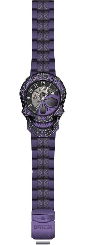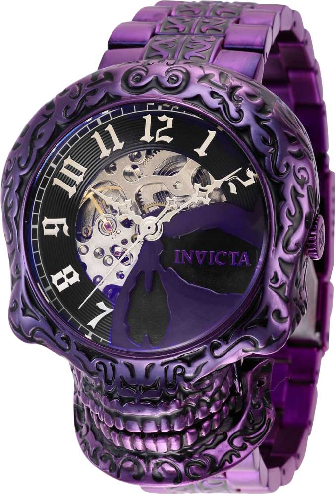 Необычный, вызывающий дизайн этих часов от Invicta станет настоящей находкой для ценителей уникальных аксессуаров. Скелетонизированные часы. В механизме 20 камней. Стальной корпус выполнен в форме черепа и украшен гравировкой. Метки в виде арабских цифр. Прозрачная задняя крышка. Заводная головка с защитой. Браслет с раскладывающейся застежкой украшен гравировкой. Застежка с системой блокировки. Производитель оставляет за собой право вносить изменения во внешний вид часов. Уточняйте при заказе, какой вариант в наличии в данный момент.