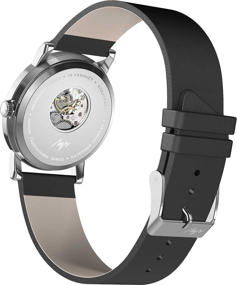 Simple 2.0. Унисекс часы. В механизме 15 камней. Запас хода 38 часов. Противоударное устройство оси баланса. Циферблат с метками в виде арабских цифр. Задняя крышка с прозрачным окошком. Ремешок с классической застежкой.