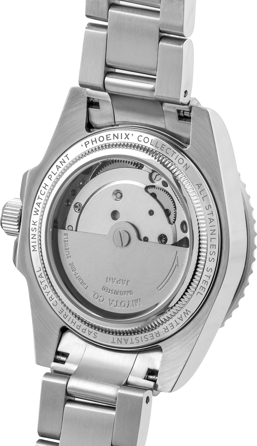 Феникс 3.0. Мужские часы. В механизме 21 камень, частота 21600 полуколебаний в час. Запас хода 42 часа. Возможность ручного завода. Противоударное устройство оси баланса. Функция stop-second.