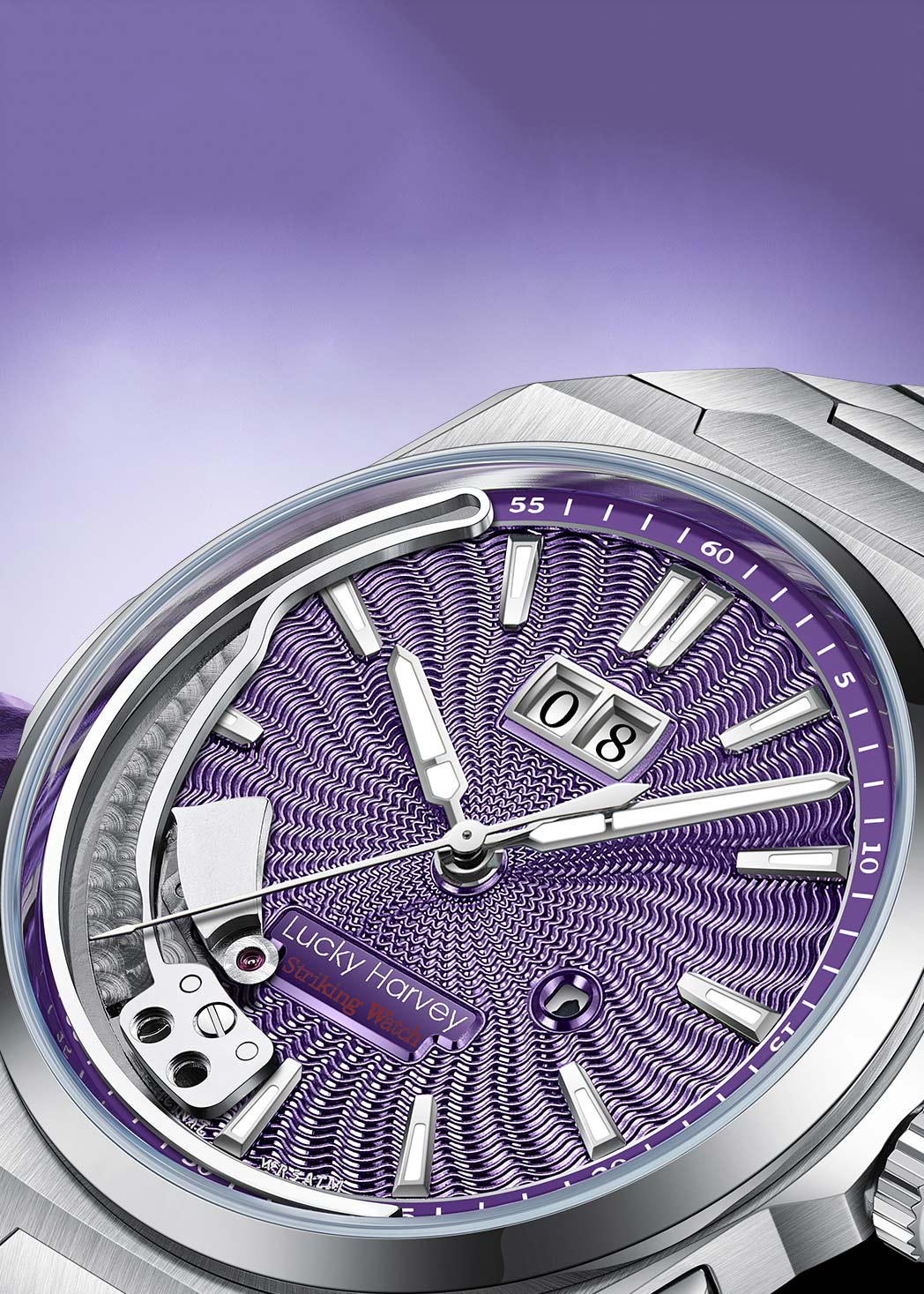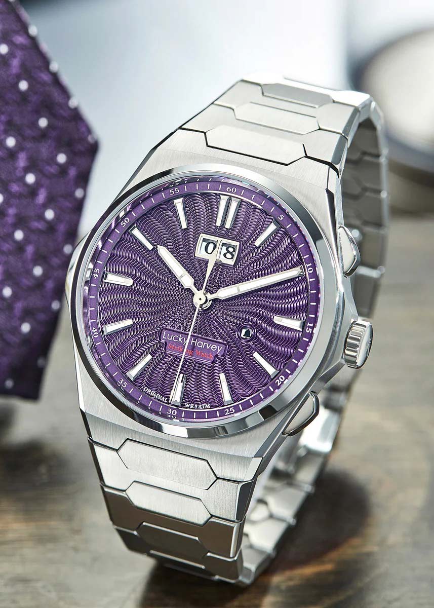 Лимитированная серия — 300 экземпляров. Мужские наручные часы Sounds Of Nature Afterglow Purple. Высокочастотный механизм с автоподзаводом LH003 собственной разработки бренда. Частота 28800 полуколебаний в час. Запас хода 40 часов. Звуковая функция боя с возможностью выключения.