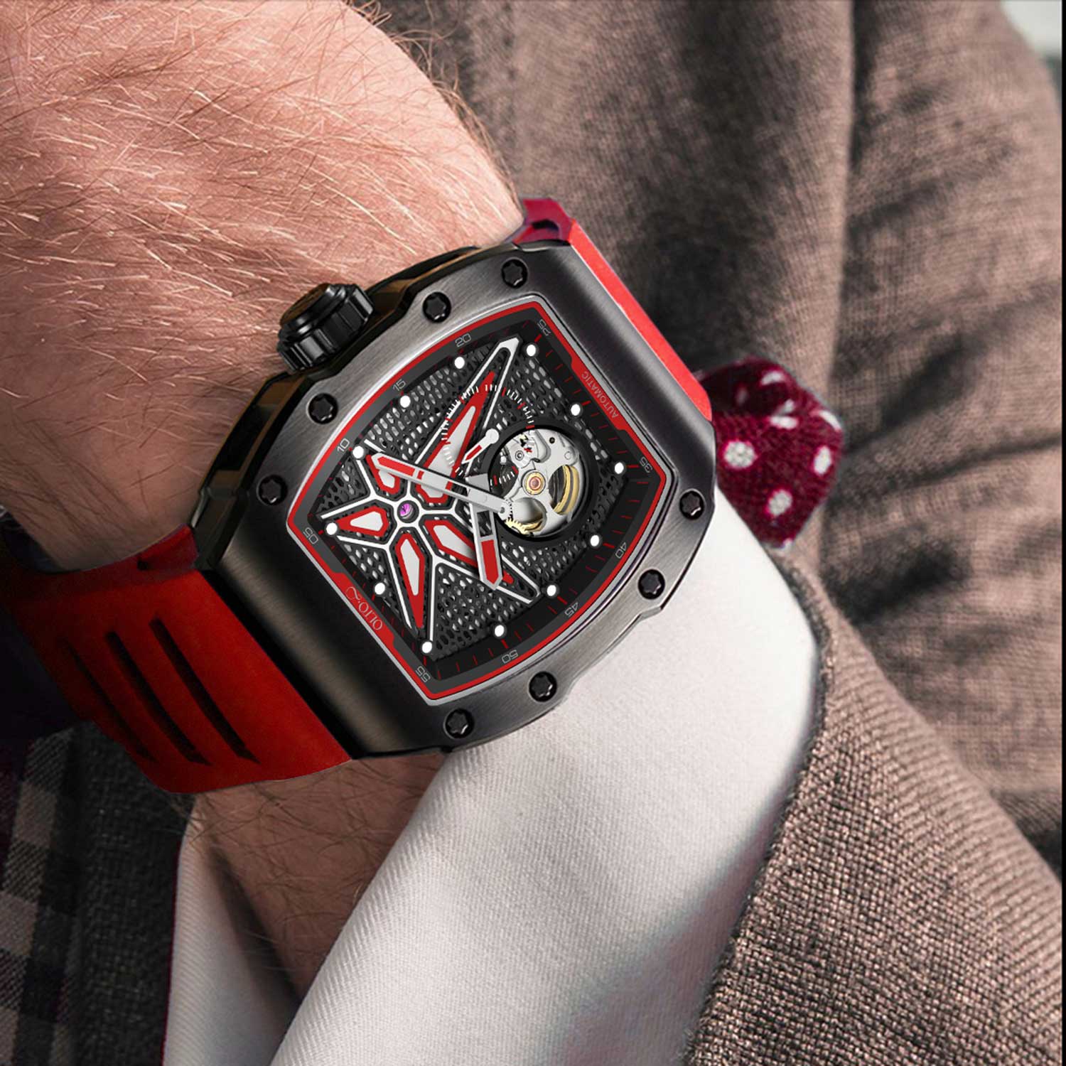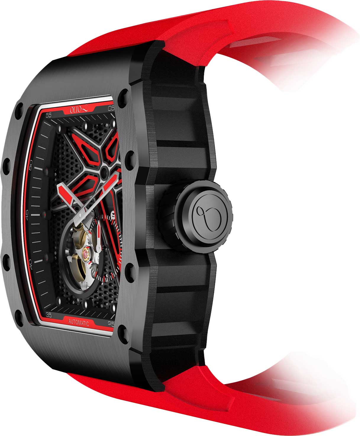 Reef. Механические наручные часы, дизайн которых вдохновлен коралловыми рифами. В механизме 21 камень, частота 21600 полуколебаний в час. Запас хода 42 часа. Функция stop-second. Возможность ручного завода. Сквозь прозрачное окошко на циферблате можно наблюдать за работой механизма часов. Секундная стрелка вынесена на отдельный циферблат. Сетчатый циферблат вдохновлен волнами и украшен светящейся морской звездой. Метки в виде точек. Стрелки и метки с люминесцентным покрытием Super Luminova, которое светится в темноте после непродолжительной зарядки на свету. Заводная головка с защитой. Прозрачная задняя крышка крепится на 12-ти винтах. Ремешок с классической застежкой.