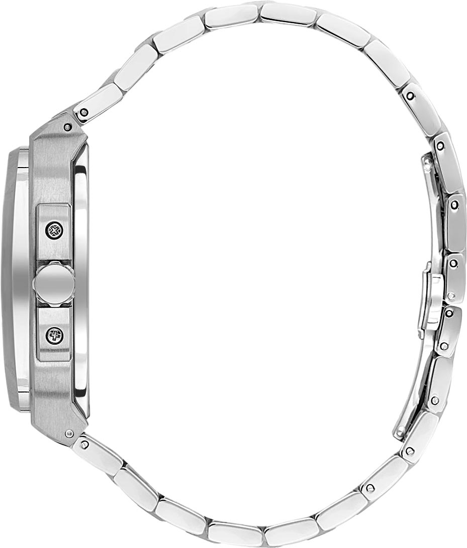 Метки и стрелки с люминесцентным покрытием, которое светится в темноте после непродолжительной зарядки на свету. Рифленая заводная головка с защитой. Стальной браслет с матовой и полированной отделкой. Раскладывающаяся застежка.